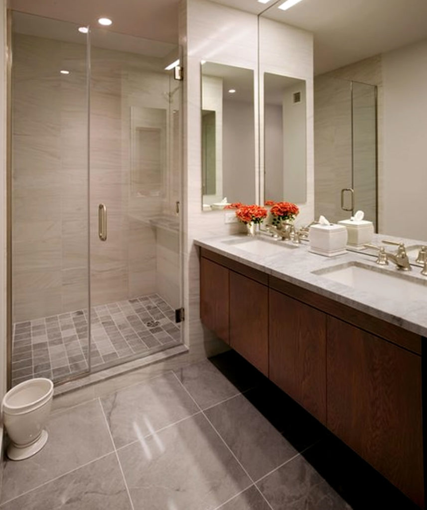 Small long narrow space can easily be turned into luxury designer style bathrooms making your bathroom appear bigger than it is. Call Herault Construction today and get a quote.
